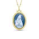 - Cameo carveout made in a natural blue agate stone, reproducing the image of La Virgen de la Altagracia.