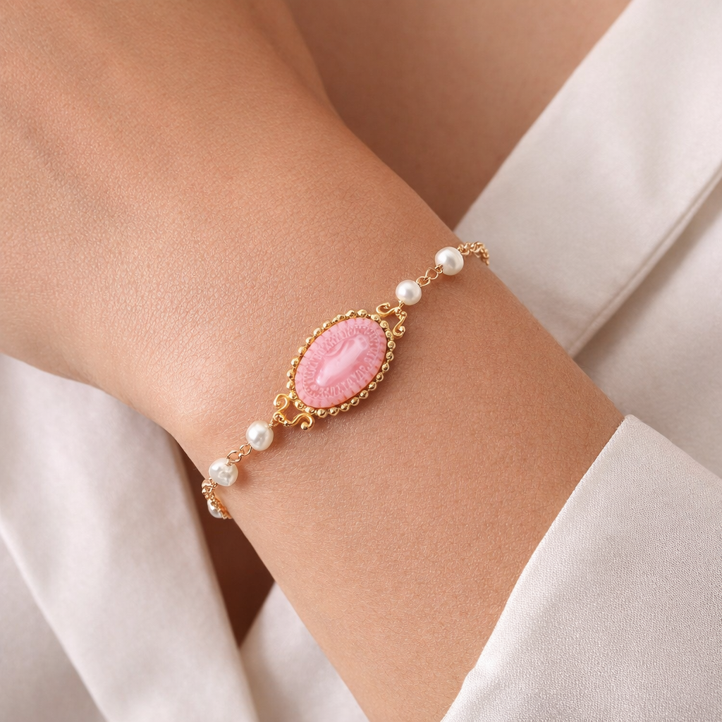 Miraculous Mary Pearl Rosary Bracelet - Rose Edition