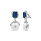 Royal Simulated Sapphire & Pearl Omega Back Drop Earrings