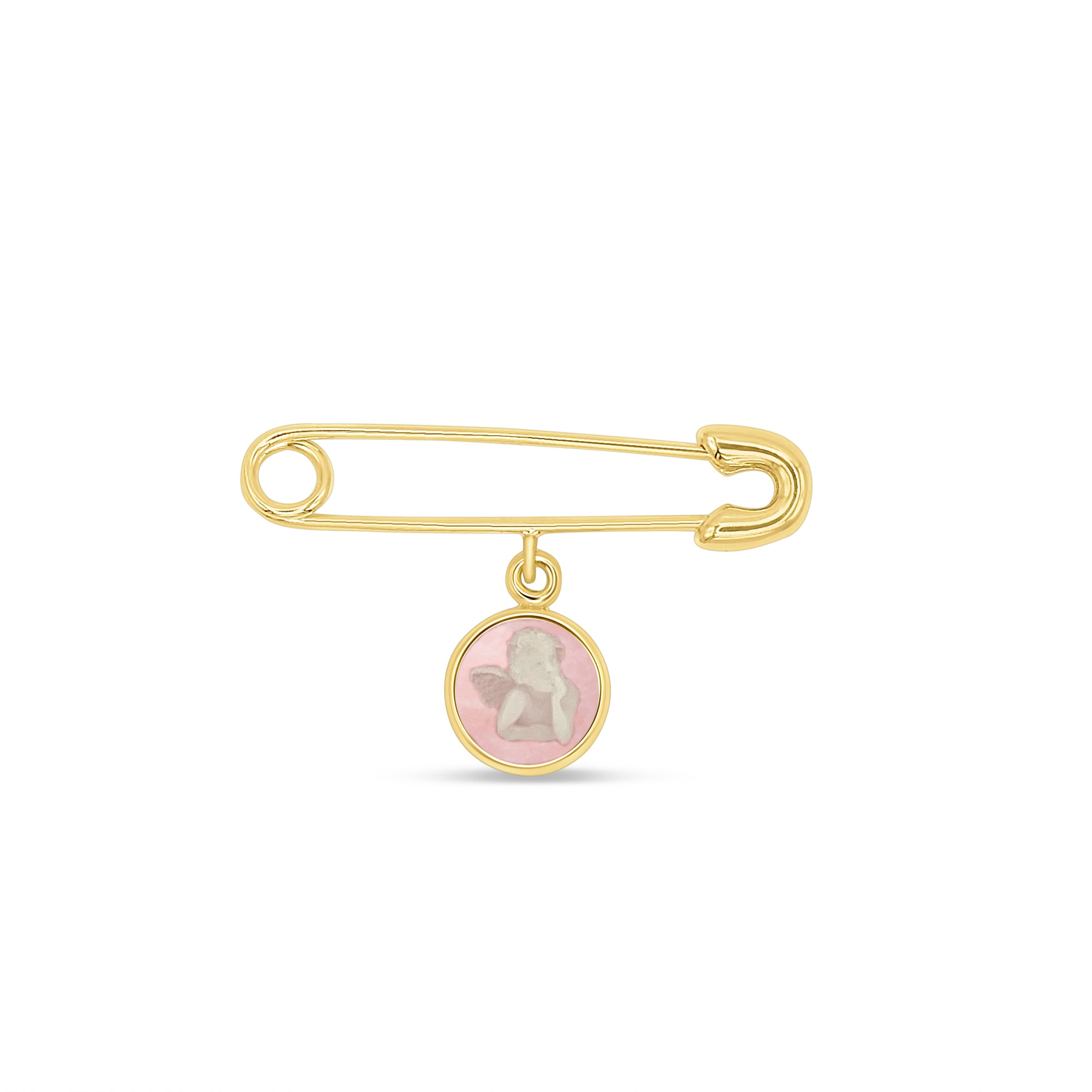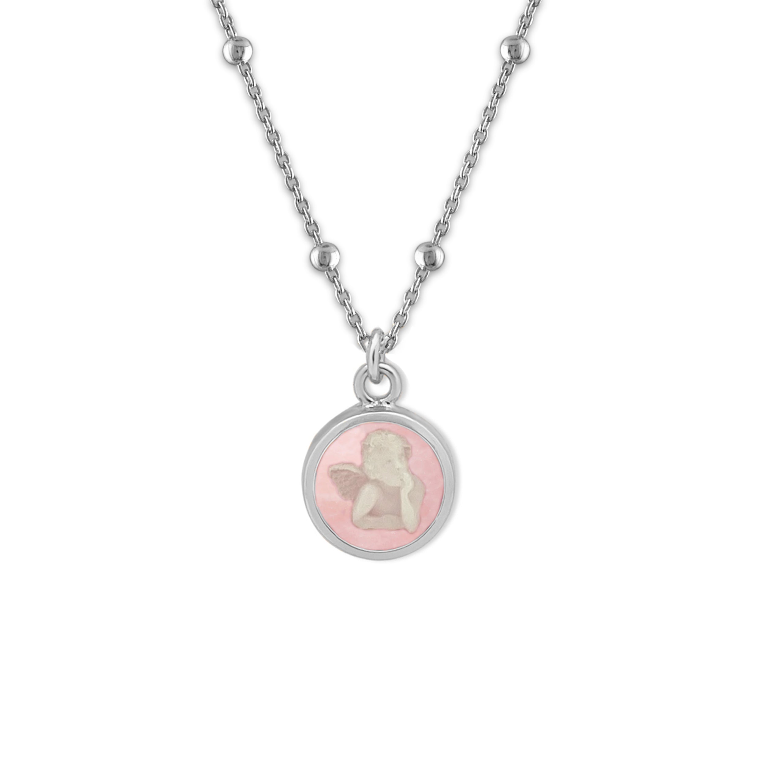 14k Gold Rose Guardian Angel Mini Pearls Necklace