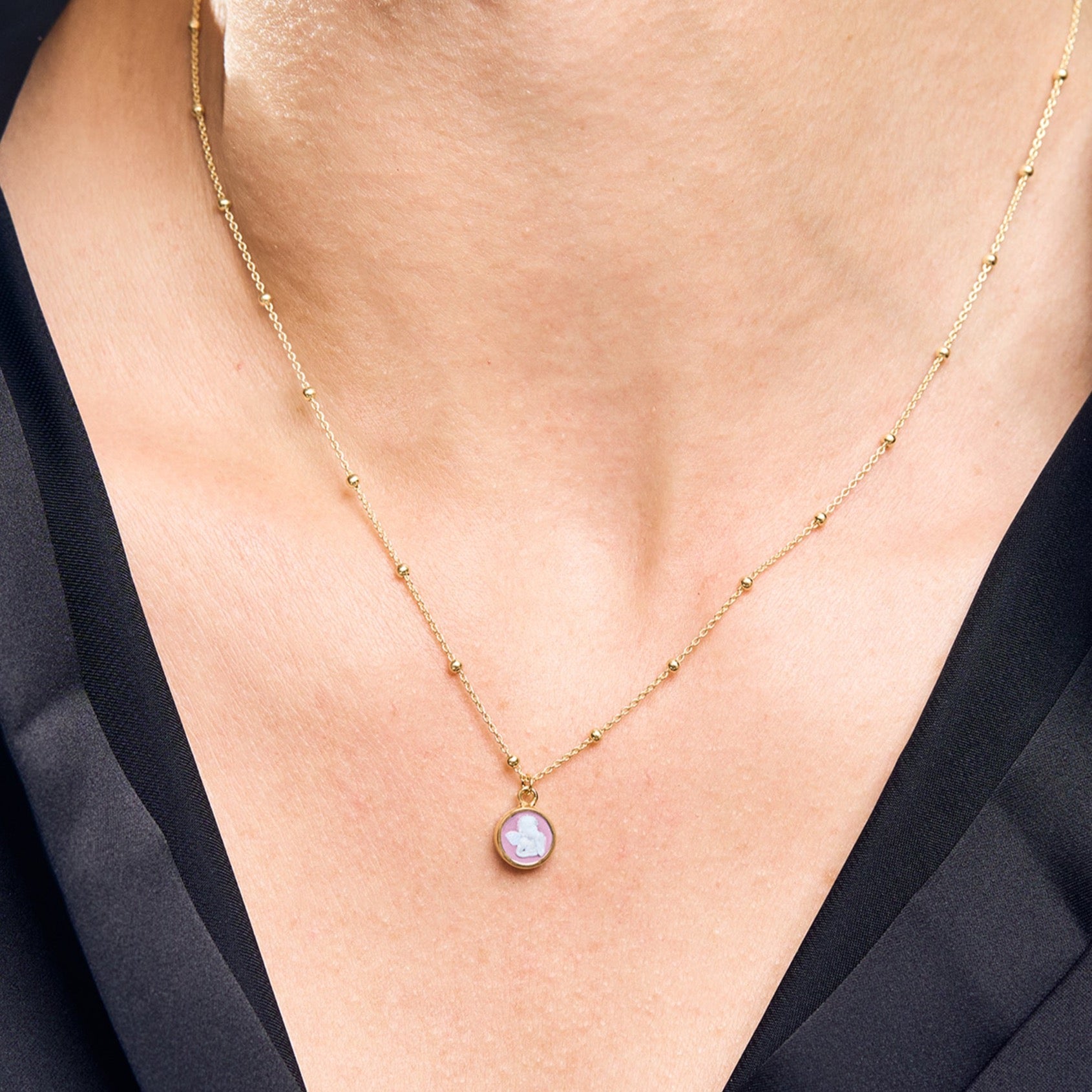 14k Gold Blue Guardian Angel Mini Pearls Necklace