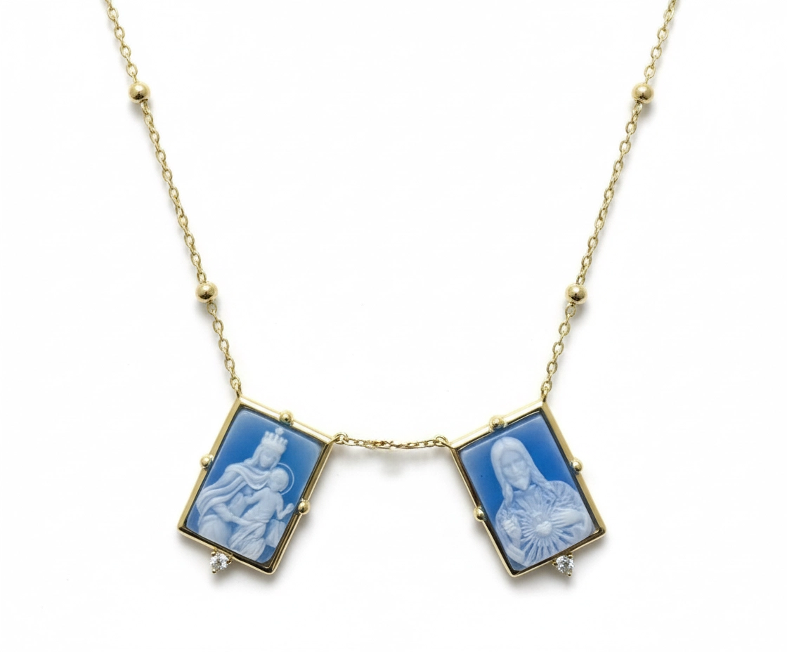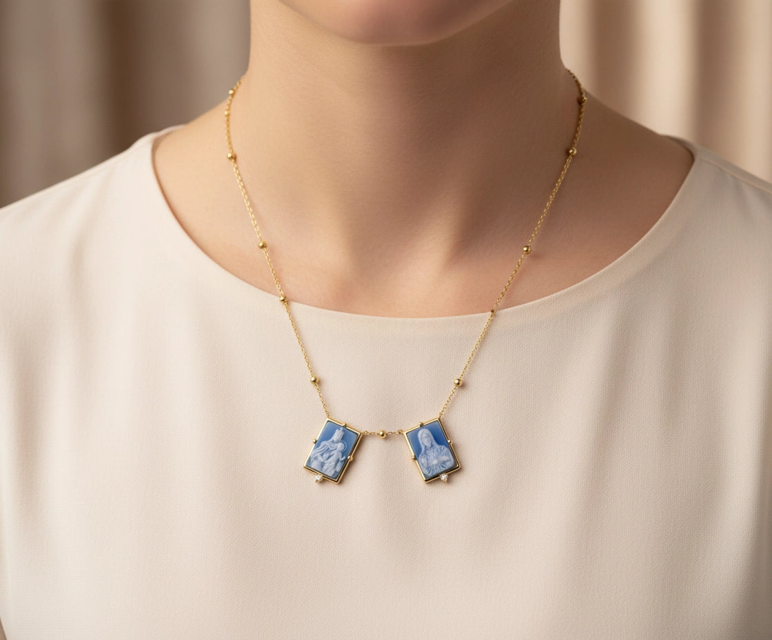 Scapular Necklace Sacred Heart & Our Lady of Mount Carmel