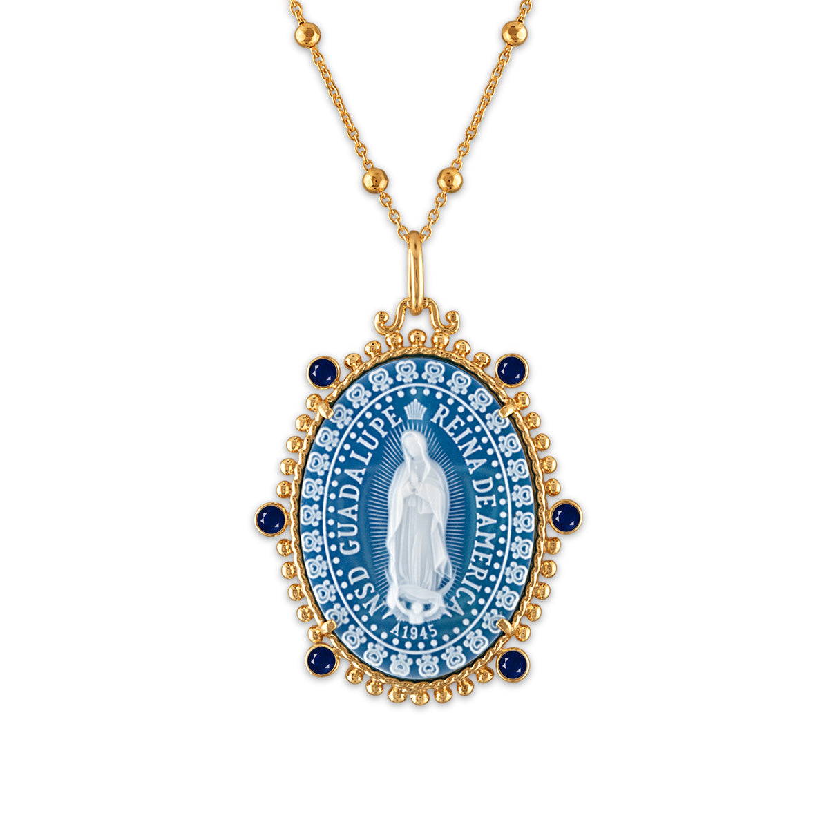 - Camafeo hecho de ágata natural, reproduciendo la imagen de la Virgen de Guadalupe.