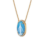 - Cameo carveout made in a natural blue agate stone, reproducing the image of the Miraculous Mary "Virgen Milagrosa".
