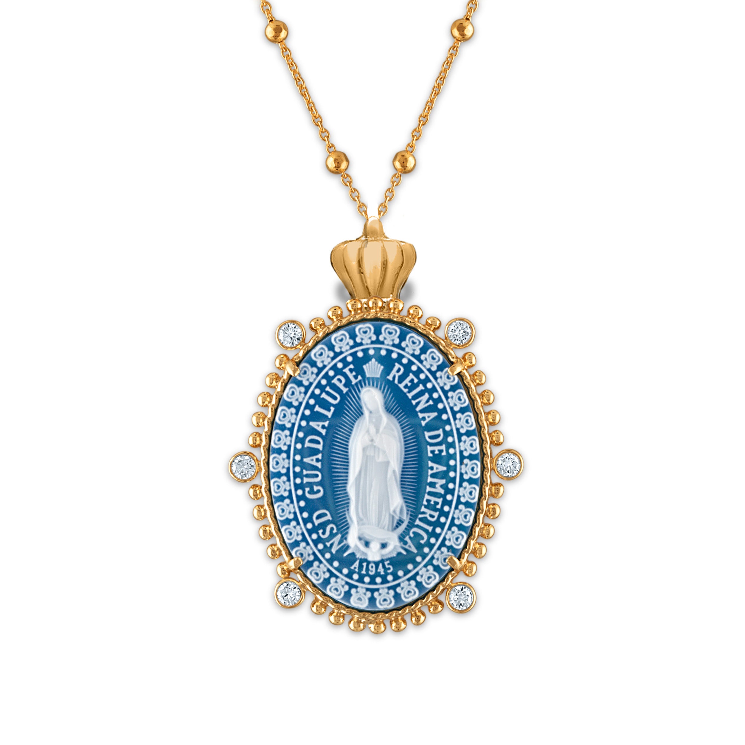 - Camafeo hecho de agata natural, reproduciendo la imagen de la Virgen de Guadalupe.