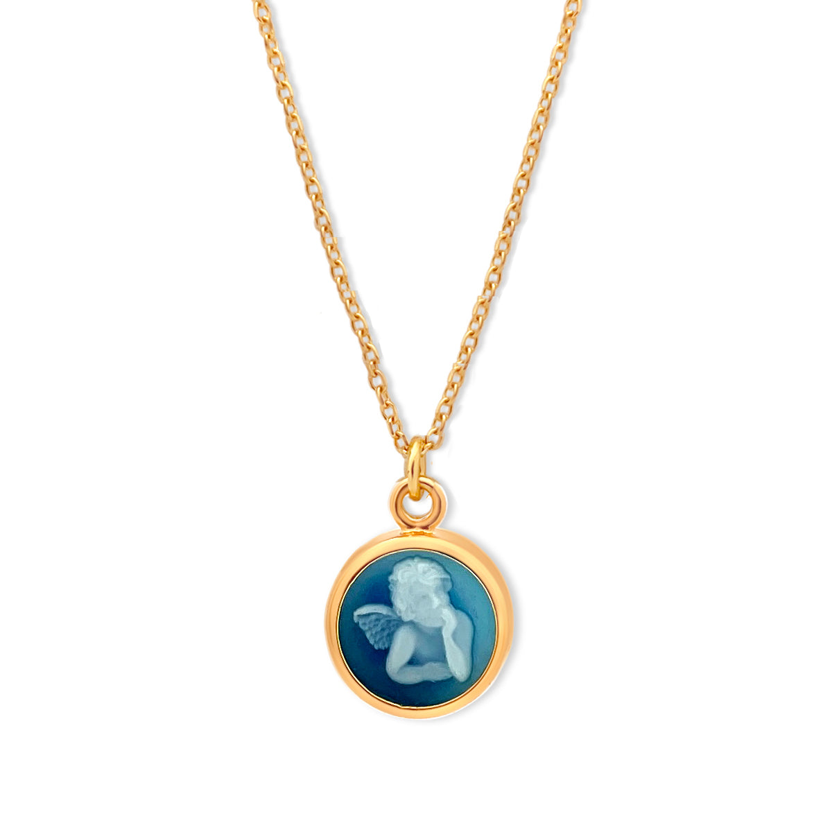 • Cameo carveout made in a natural blue agate stone, reproducing the image of a Guardian Angel Angel de la Guardia.