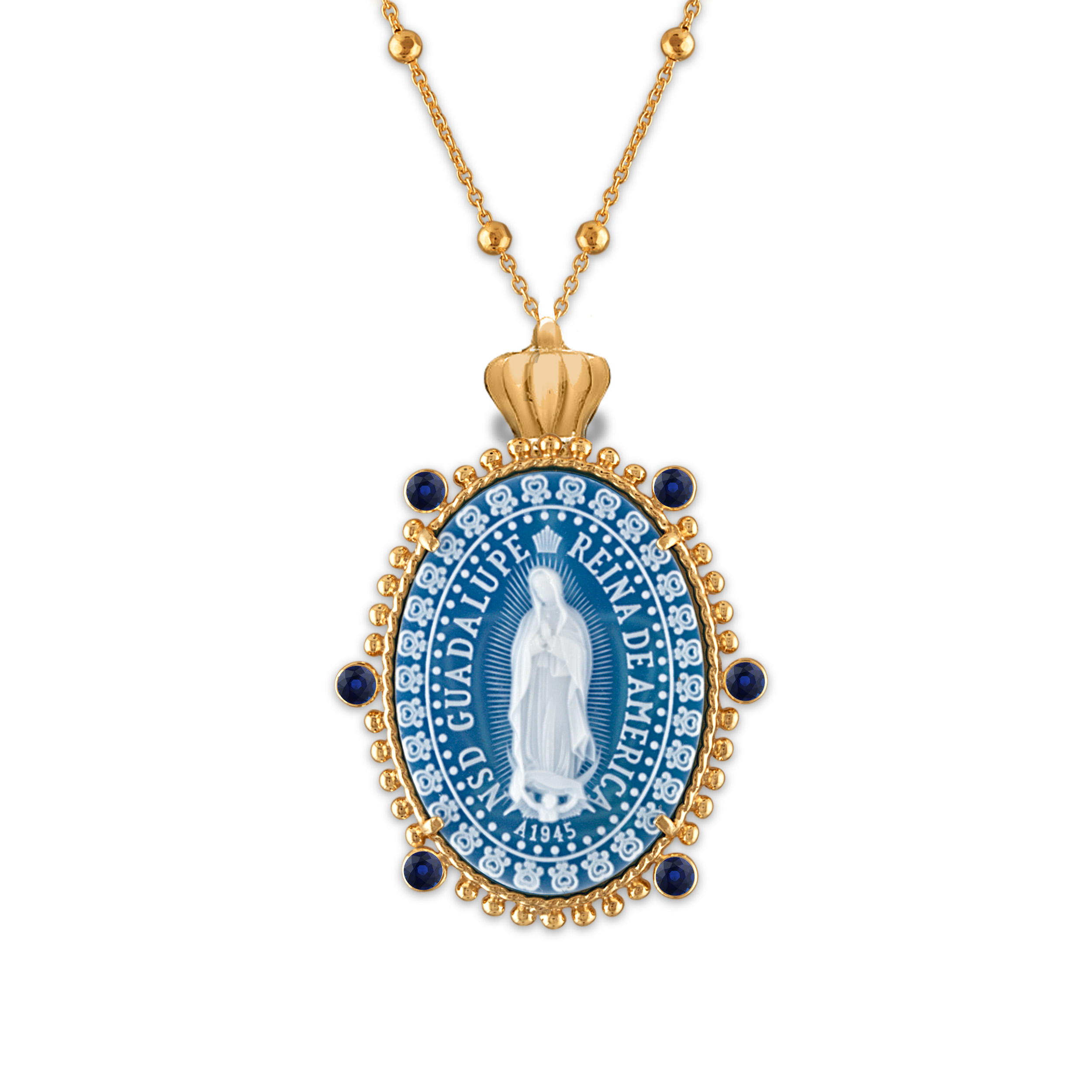 - Camafeo hecho de agata natural, reproduciendo la imagen de la Virgen de Guadalupe.