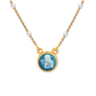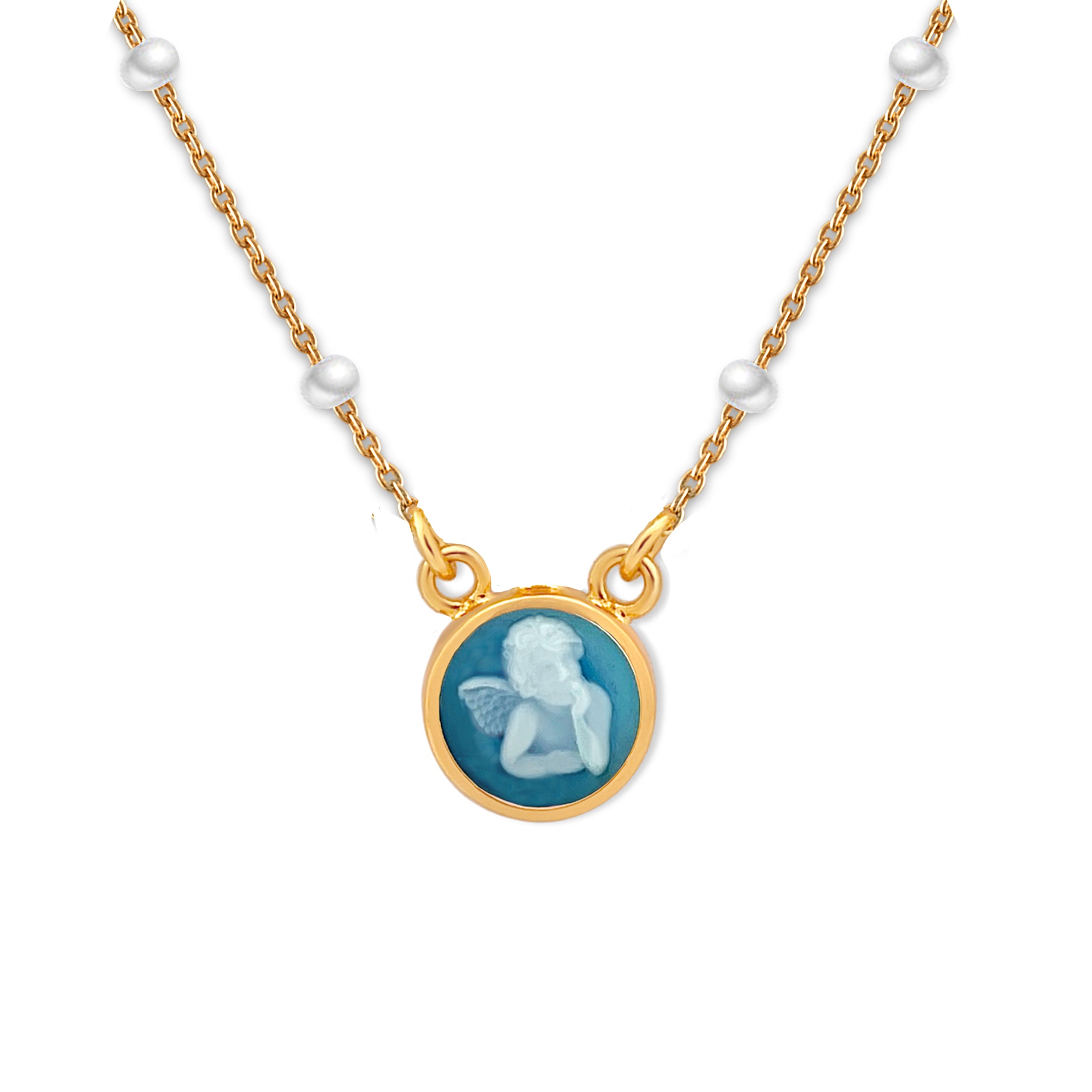 - Cameo carveout made in a natural light blue agate stone, reproducing the image of a Guardian Angel, Angel de la Guardia.