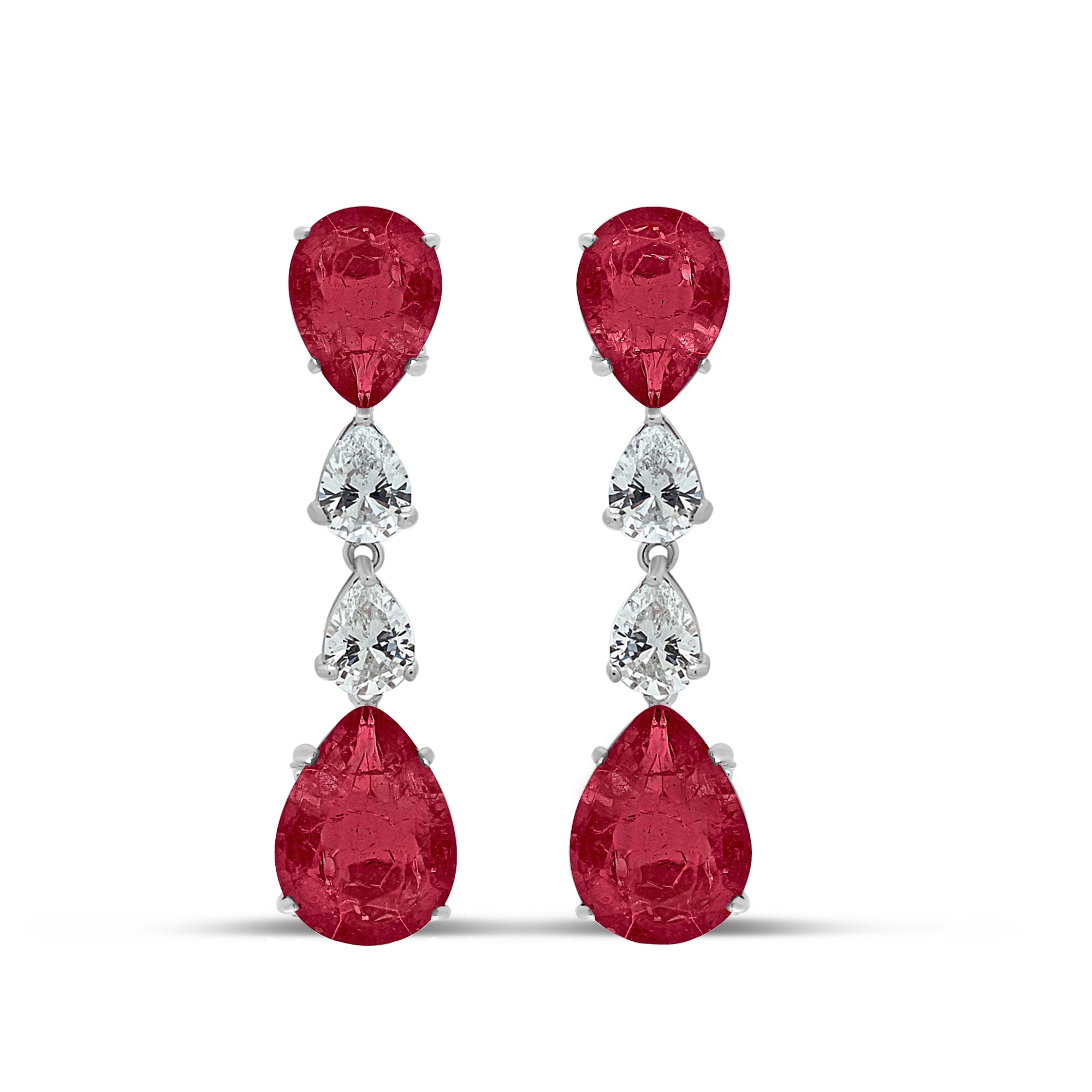 Stunning array of cubic zirconias set on a sterling silver omega clip base featuring signature simulated lab ruby Stones.
